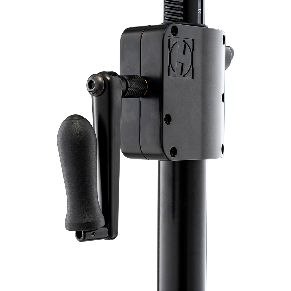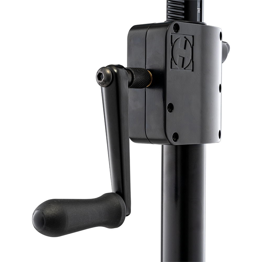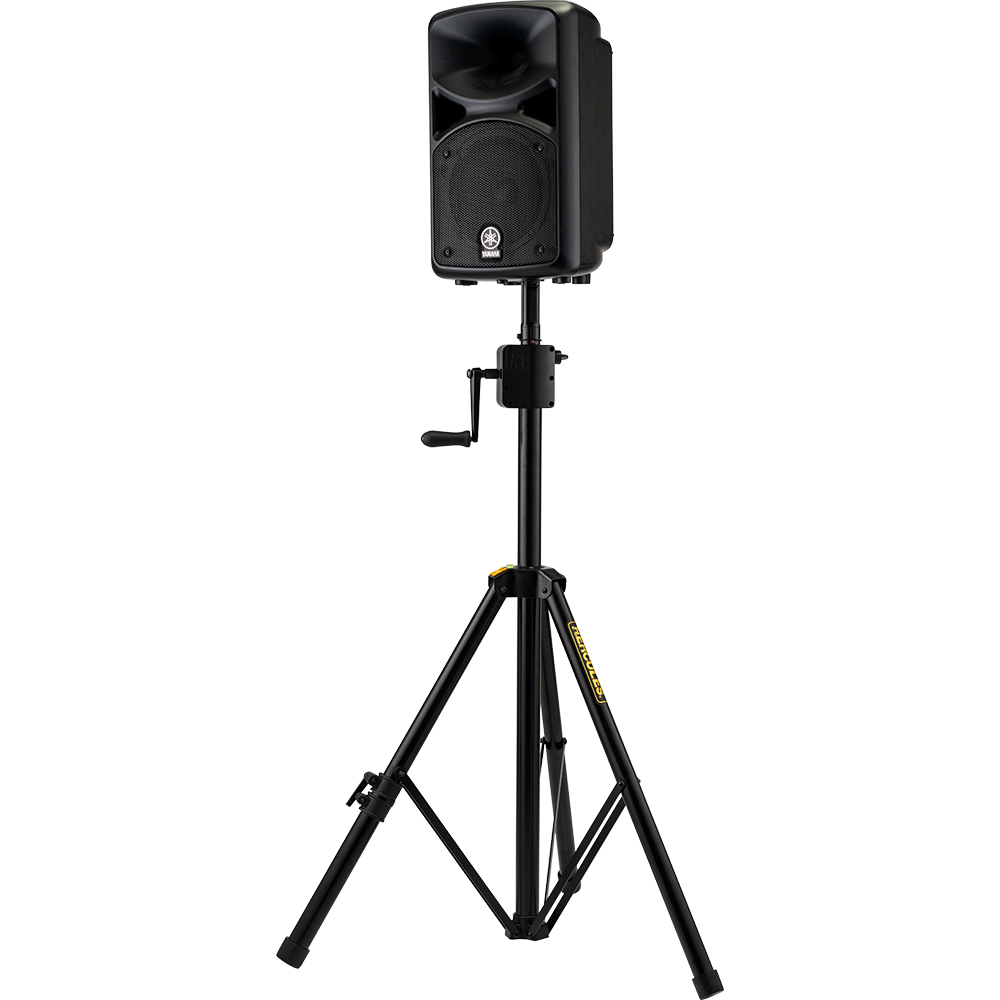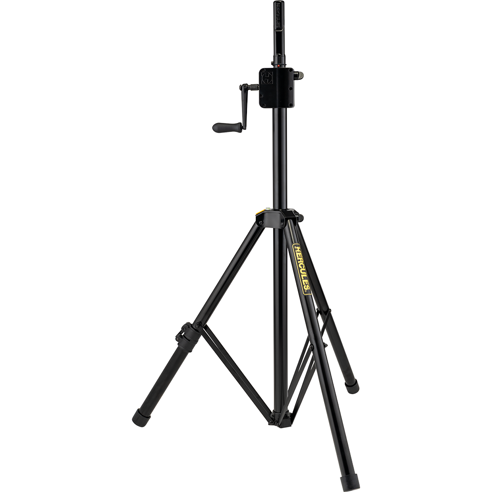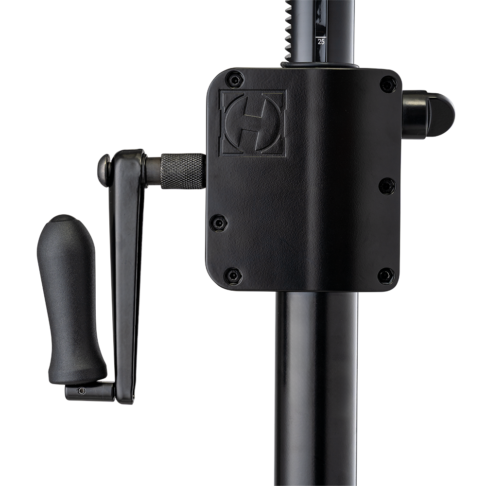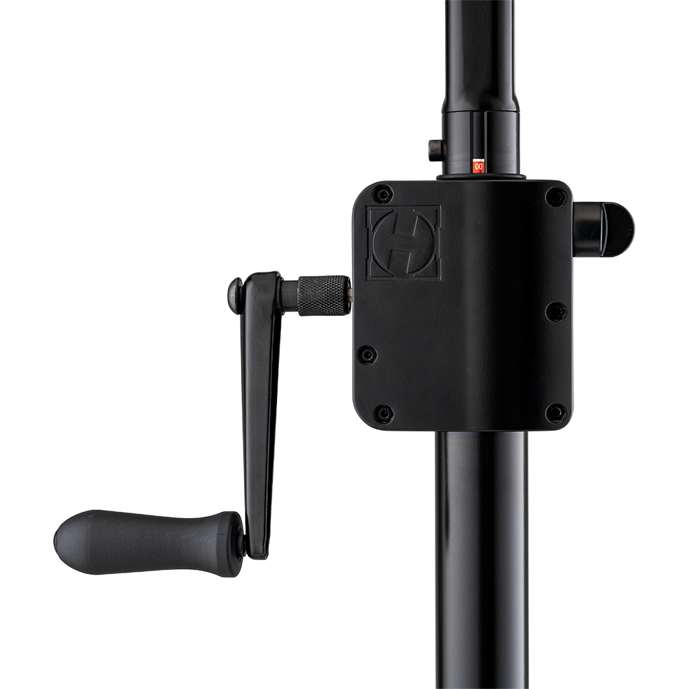The HERCULES HCSS-710B PLUS Gear Up Speaker Stand features a heavy-duty gear-up system with a foldable crank handle for easy transport and storage. An integrated leveling leg ensures great stability even on stairs, risers, or uneven surfaces, making it ideal for live events, rentals and stage setups. The EZ adapter offers great compatibility as it fits 35-40 mm (1.4" -1.6") speaker sockets.