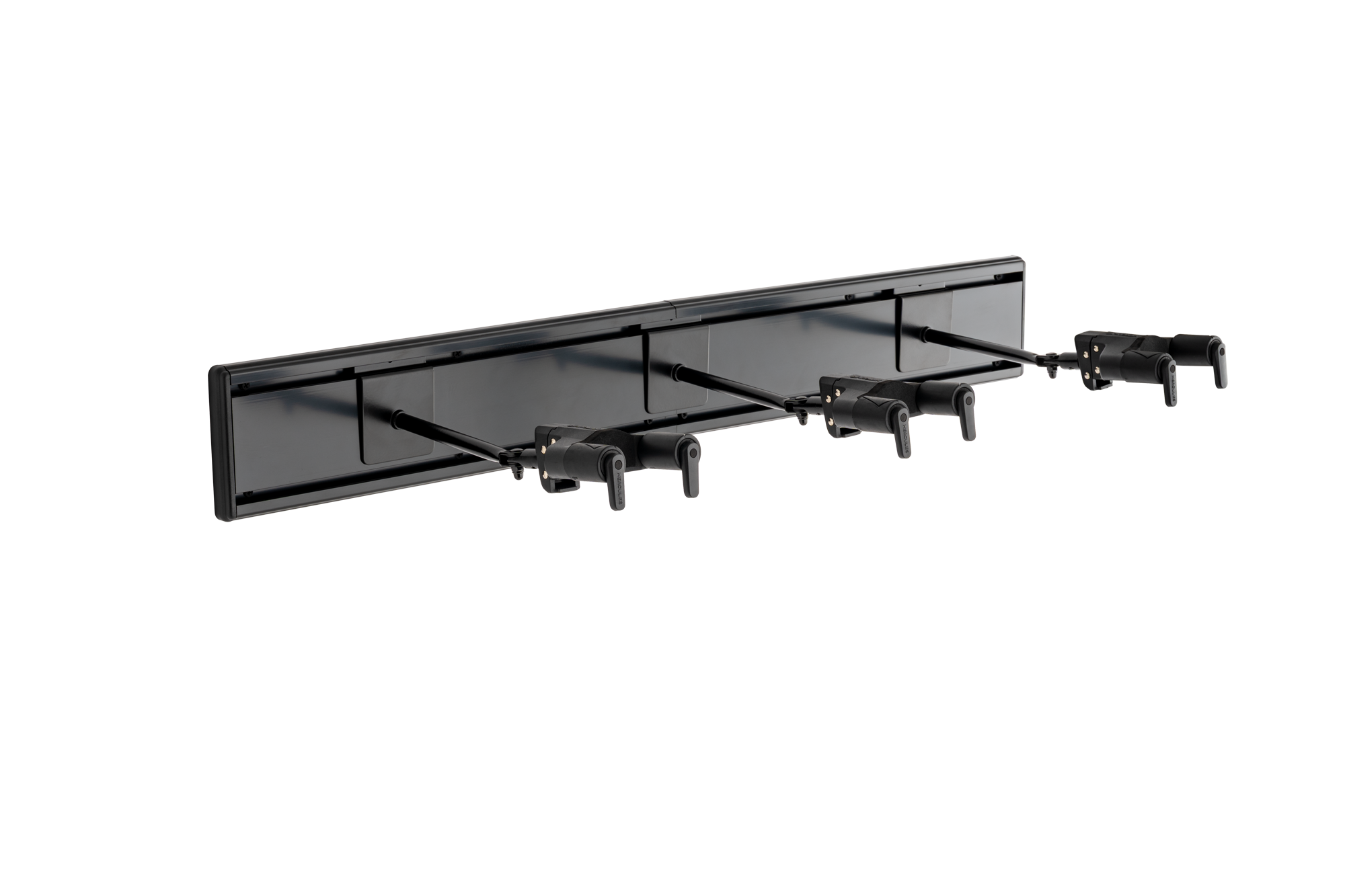 Das HERCULES Slatwall-Set HCGSP-403SB für 3 Gitarren ist perfekt für die hochwertige Präsentation der Instrumente zu Hause. Dieses Set besteht aus zwei Slatwall-Paneelen und drei HCGSP-40SB+ Langarm Slatwall-Wandhaltern inklusive N.I.N.A. Halsbreitenadaptern.