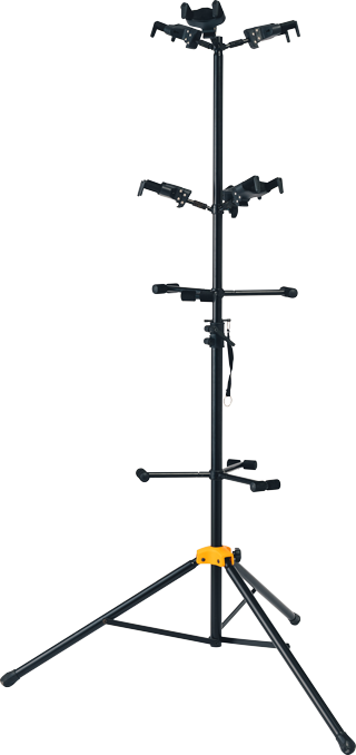 The HERCULES Multi - Guitar Stand GS526B PLUS accommodates six instruments and features the foldable Auto Grip System (AGS) yokes, Instant Height Adjustment Clutch, Specially Formulated Foam (SFF) padding contacts and the adjustable back rests.